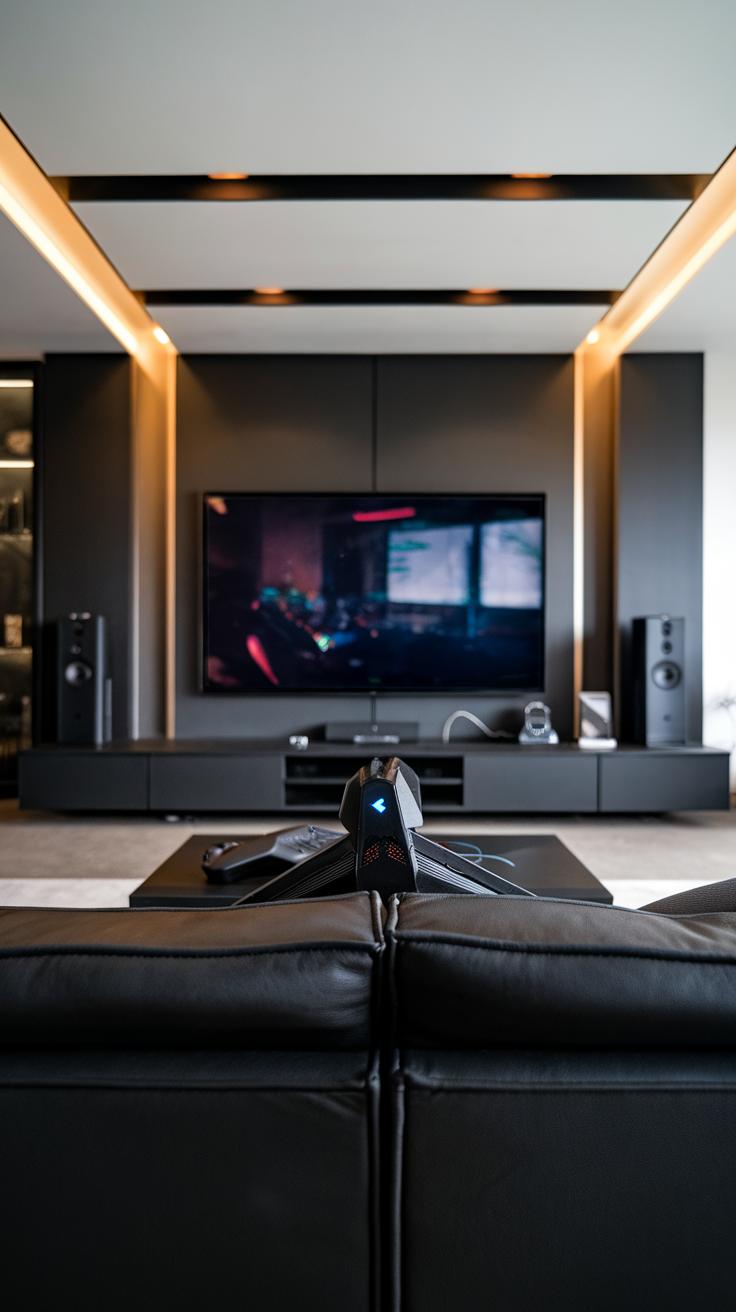When selecting display screens, opt for wall-mounted TVs or gaming monitors that sit flush against the wall. This setup reduces clutter and emphasizes the sleek lines of black furnishings. Use cable management solutions to hide wires, keeping the area tidy and visually appealing.