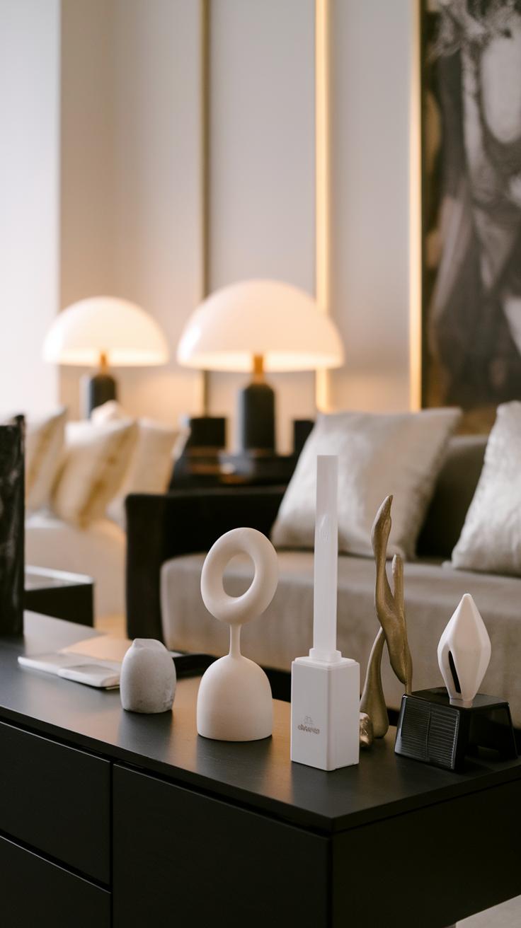 Selecting impactful artwork enhances the aesthetic appeal of black furniture. Choose vibrant paintings or prints that contrast with dark tones, drawing attention to the walls and adding life. Incorporate decorative elements like geometric sculptures or metallic accents to add a modern touch. These accessories work well with the sleek design of your black furniture, creating a cohesive look in your living room. Consider using illuminated shelves to display collectibles or LED strips to highlight art pieces, blending functionality with style and ensuring the space feels lively during gaming sessions.