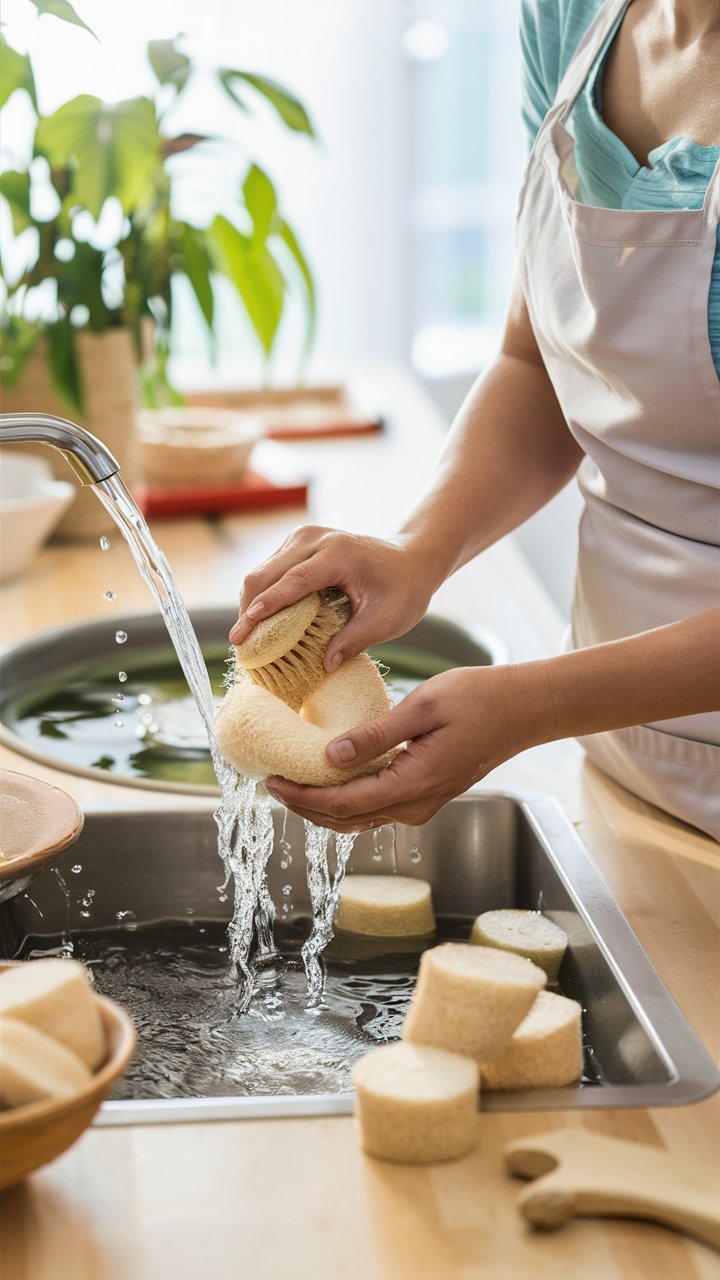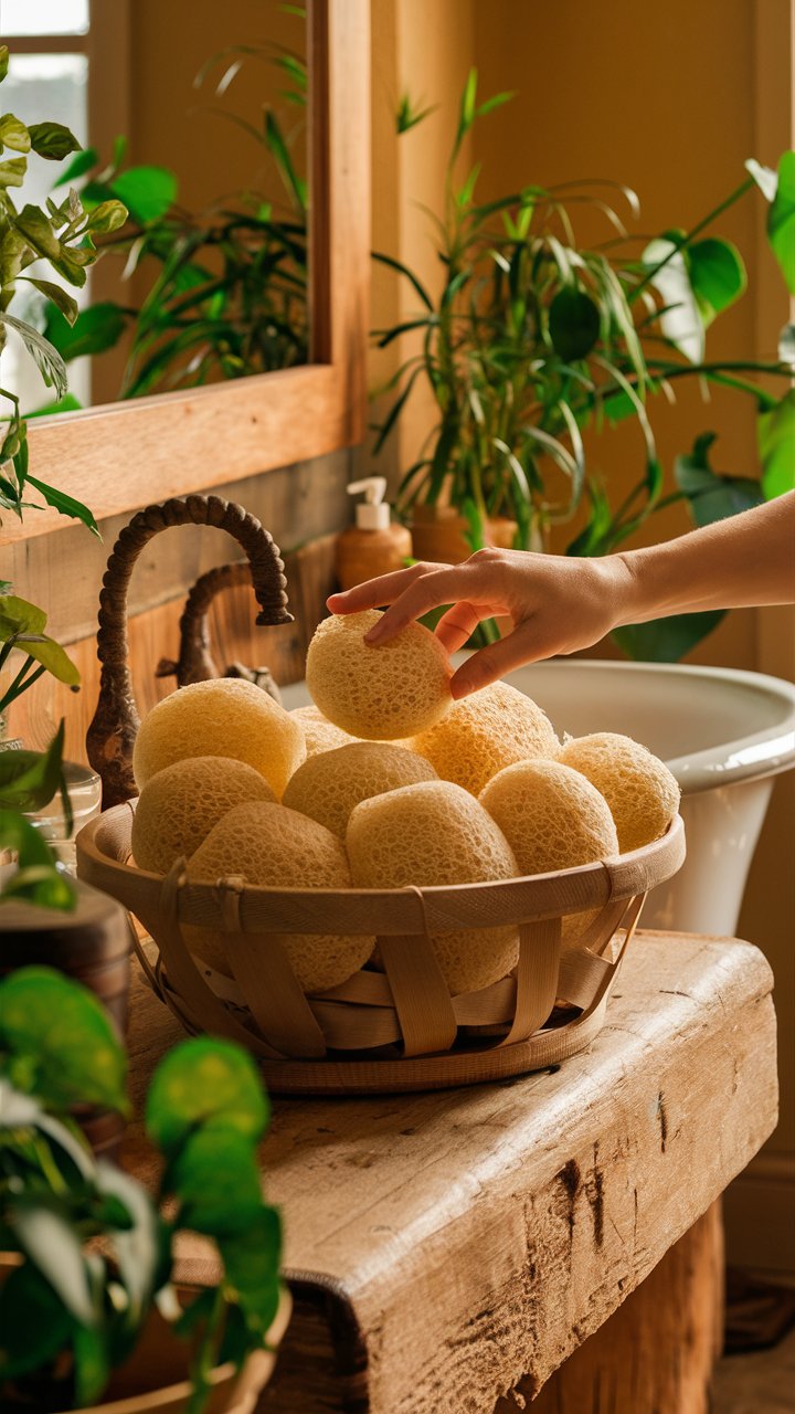 Instead of using a bleach solution, opt for natural disinfectants like vinegar or baking soda. These substances effectively clean the luffa while being gentler on the environment and safe for handling.
