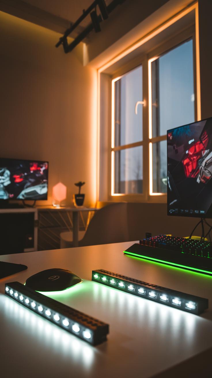 Task lighting plays a crucial role as well. Use specific lights for gaming stations that directly illuminate your screen and keyboard. Desk lamps with adjustable brightness or RGB lights can enhance focus while adding style to your setup. Try combining both ambient and task lighting to achieve the perfect balance, allowing for a dynamic and immersive gaming experience.