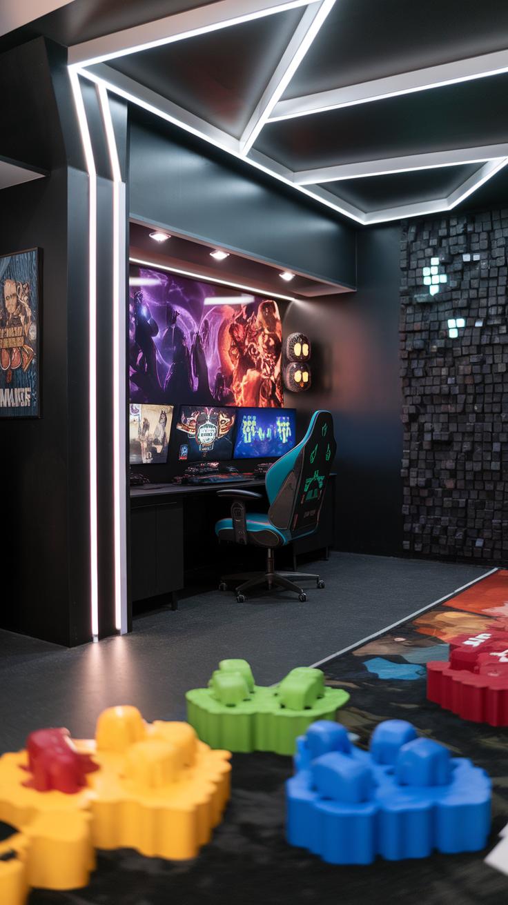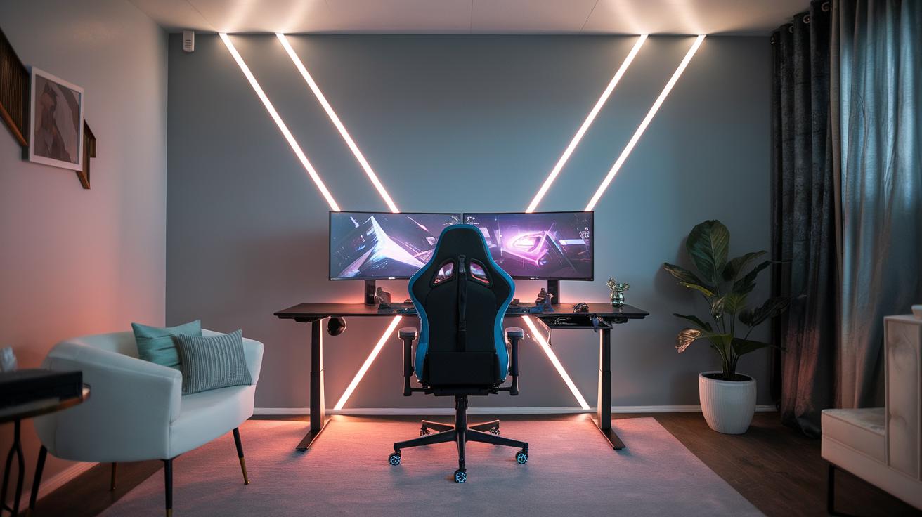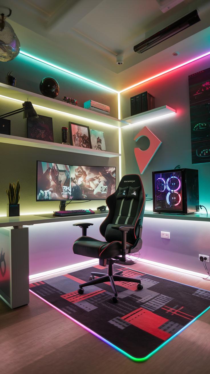 Using LED strip lights around your gaming setup adds color and depth to your space. Choose colors that match your favorite game or create a dynamic environment that changes with in-game events. Smart bulbs allow you to adjust brightness and color with an app, giving you full control. Position floor lamps in corners to provide ambient lighting without distracting from your screen. Wall-mounted lights can also highlight gaming posters or collectibles, turning your room into a spectacular gamer haven.