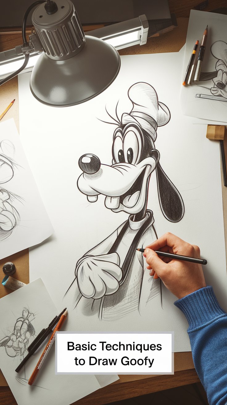 To draw Goofy effectively, start by breaking him down into basic shapes. Use a large oval for his head; this will set the foundation for his unique shape. Next, sketch two smaller ovals at the top for his ears, positioning them slightly ajar to capture that quirky look. For his body, a slightly elongated rectangle or oval works well, ensuring to leave space for his limbs. These shapes act as the building blocks for capturing Goofy’s delightful essence.