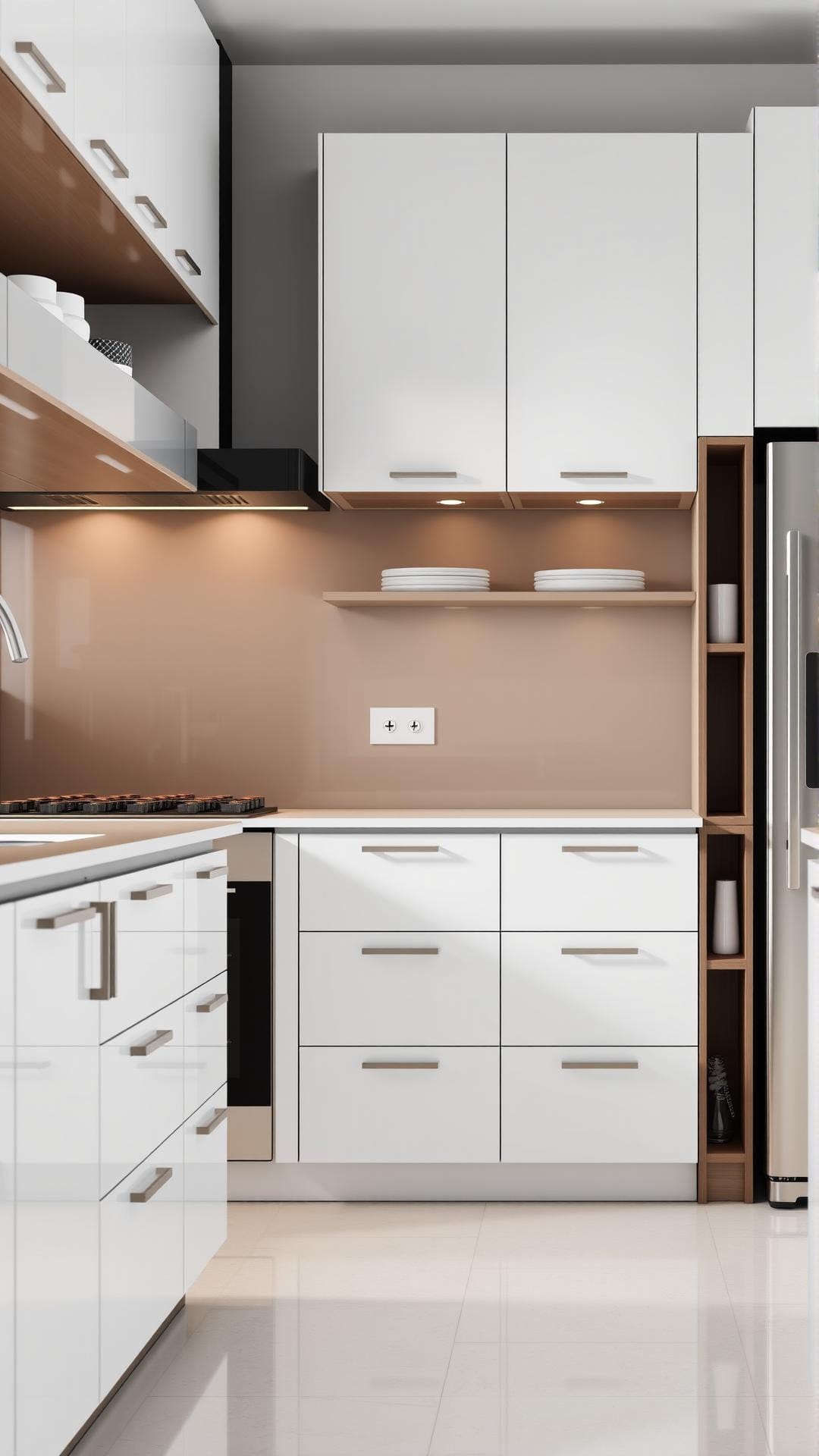 Color choices play a significant role in achieving this aesthetic. Soft neutrals like whites, grays, and beiges are favored, often paired with contrasting accents in darker shades for depth. These muted tones allow for easy coordination with various countertops and backsplash materials. Additionally, handles and knobs are frequently replaced with integrated pulls or touch-release mechanisms, further contributing to the sleek appearance.