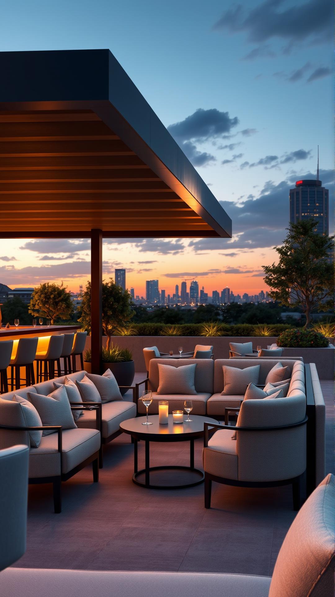 The design of outdoor spaces must prioritize comfort while maintaining elegance. High-quality furnishings, such as plush loungers, chic bar stools, and stylish dining tables, contribute to an inviting environment that reflects the bar’s overall aesthetic. Luxury fabrics and weather-resistant materials ensure that the outdoor area remains both functional and visually appealing, regardless of weather conditions.
