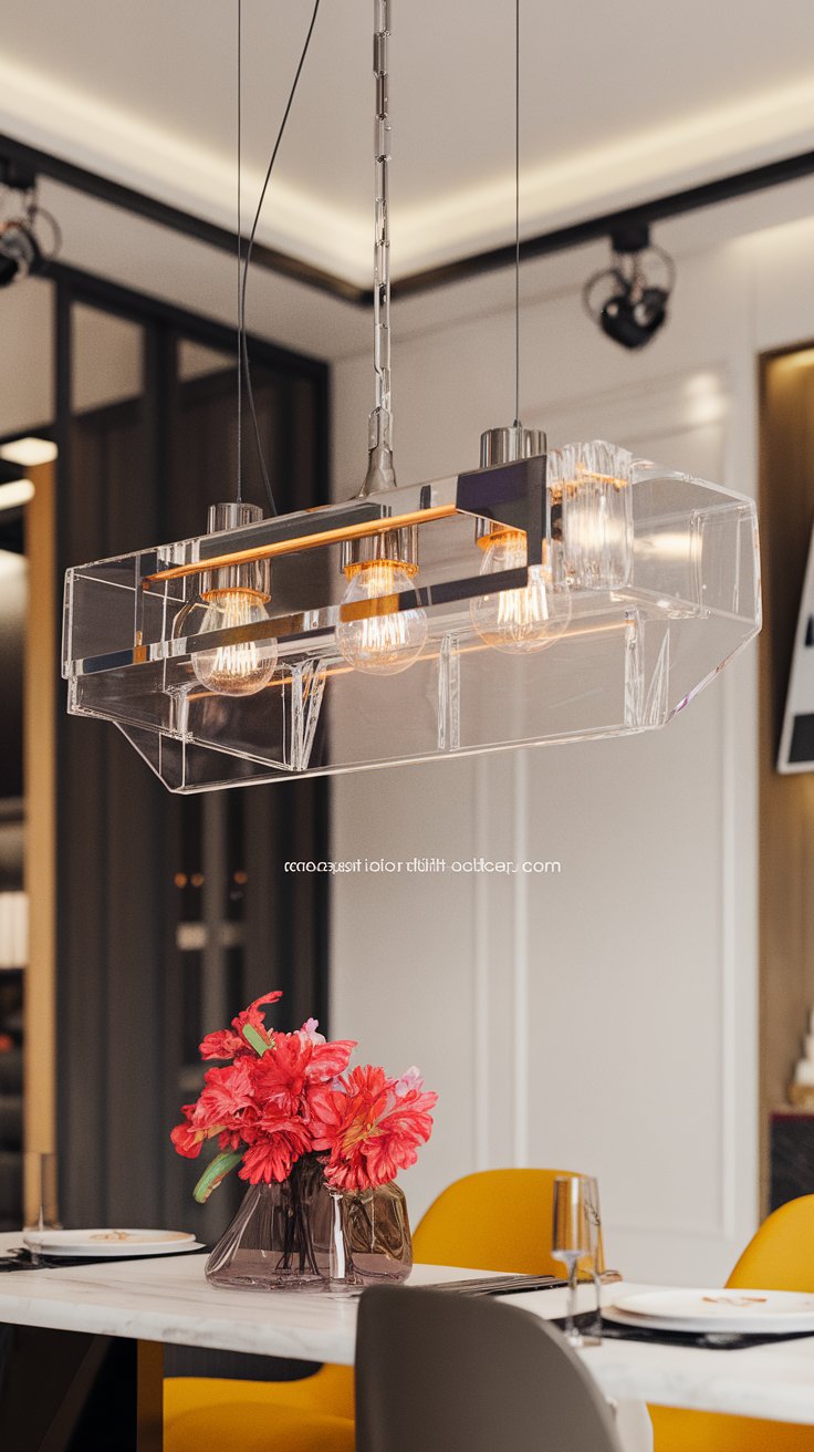 - Acrylic chandeliers and matte black finishes add elegance and sophistication to dining and living spaces.
