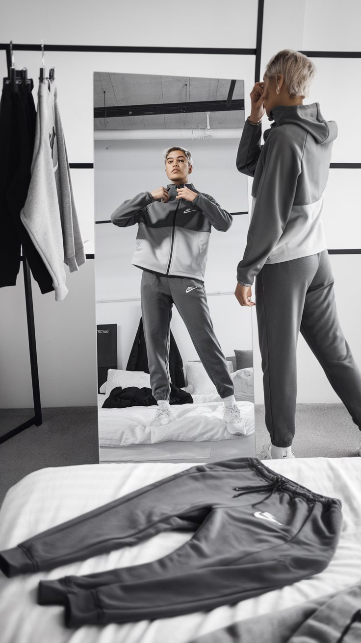 John, a fitness enthusiast and casual fashion lover, wanted a wardrobe solution that combined comfort with style for his weekend outings during winter. He chose a Nike Tech Fleece full-zip hoodie and joggers in a classic grey tone for their warmth and modern design.