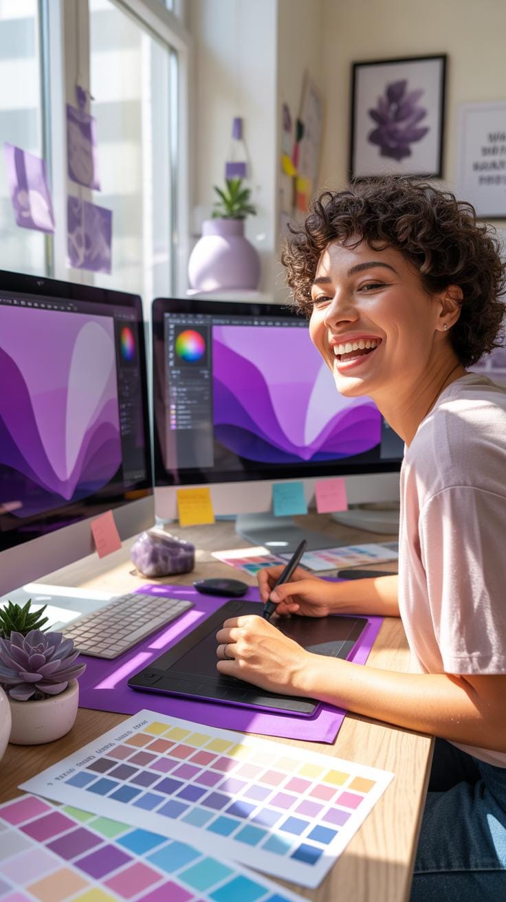 It’s tempting to pick a bold purple and go wild. But hesitation can be good; test shades on different screen types. Purple changes a lot under various lights and displays, so checking your choice beyond your monitor ensures consistency.