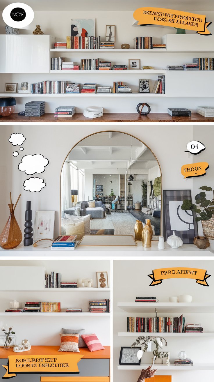 - Enhancing every room involves smartly combining sleek shelves, statement mirrors, and curated displays for a harmonious look.