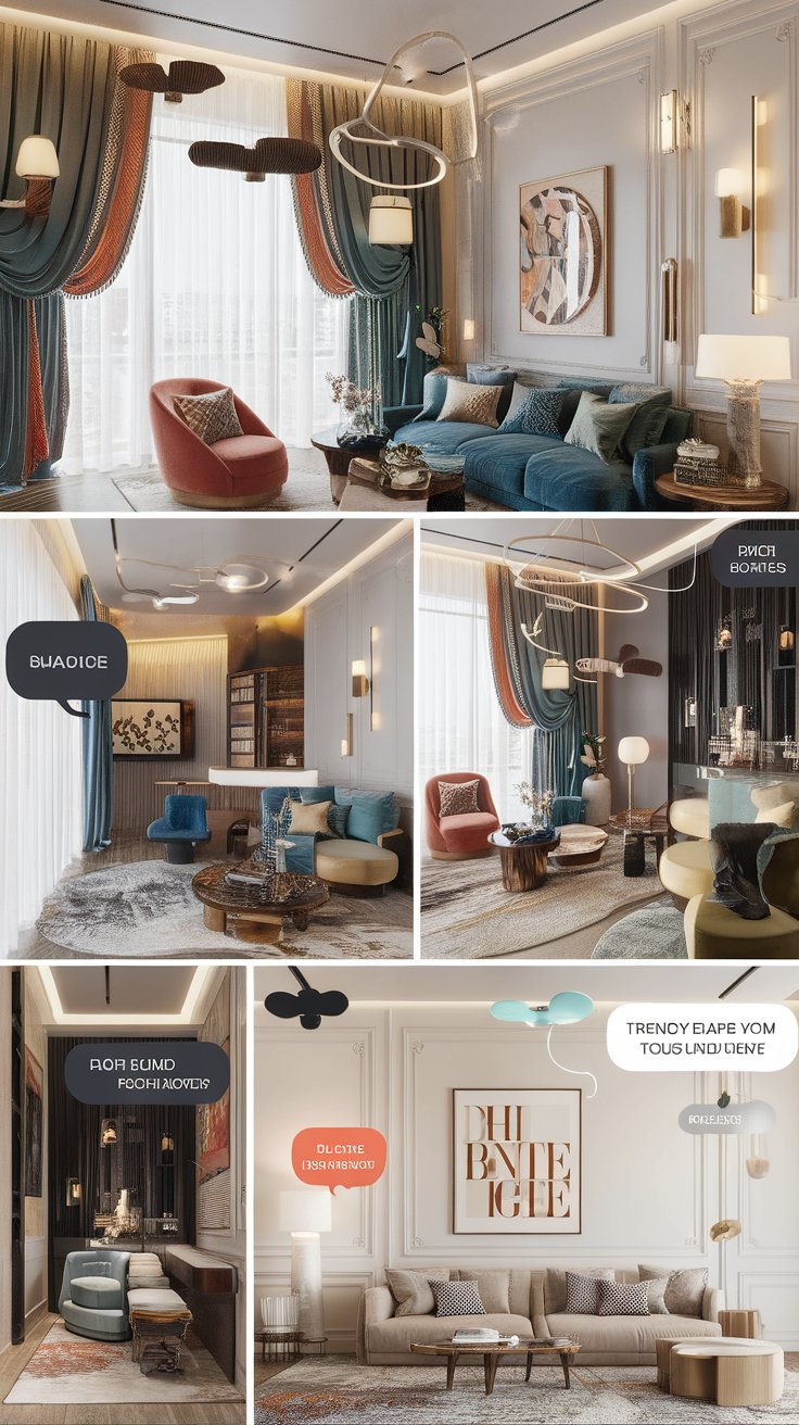 - Designing stylish spaces requires balancing trendy decor elements like curtains, rugs, and decorative lighting with sustainable materials.