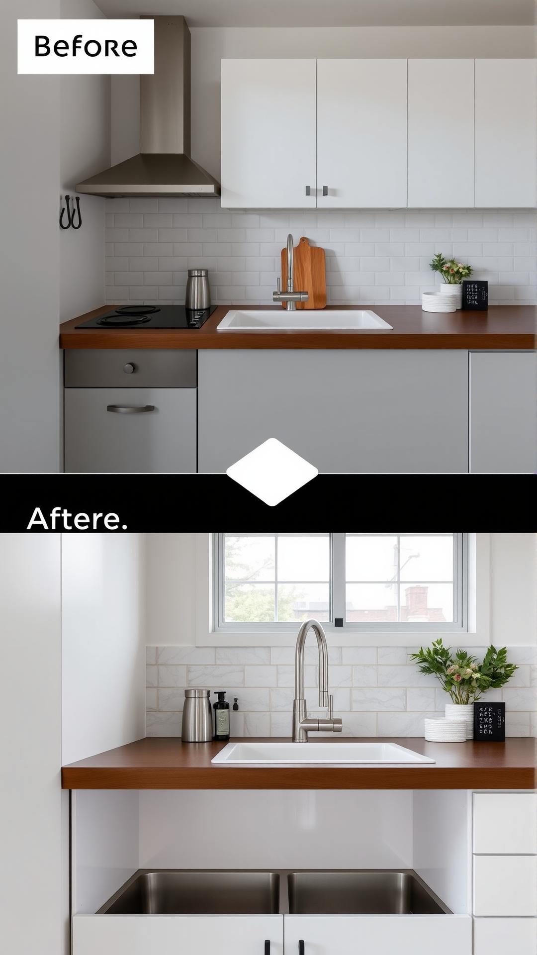 In one striking renovation, a traditional farmhouse kitchen underwent a complete overhaul, transitioning to a sleek, contemporary design. Initially dominated by a dark wood, double-basin sink, the kitchen appeared dated and heavy. The homeowners opted for a striking under-mount stainless steel sink that seamlessly integrated with a stunning quartz countertop. This transition not only provided a modern flair but also maximized countertop space, allowing for easier meal preparation and clean-up. The soft white tones of the new sink created a bright and airy atmosphere, transforming the kitchen into a welcoming culinary haven.
