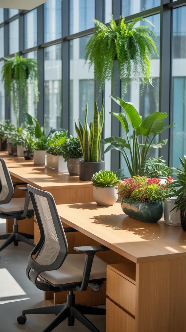 These plants not only add natural color but quietly keep the workspace fresh. You might think they’re just decorative, but they’re actually helping your brain and lungs in the background.